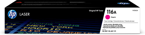 W2063A HP 116A Magenta Original Toner Cartridge Product specifications:Color:??MagentaProduct:??Toner?CartridgeProduct type:?Original?Number of copies: 700Manufacturer:?HP incManufacturer's number:? ?W2063A? Printer compatibility:? HP - Color Laser Series: Color Laser MFP 178nw Color Laser MFP 179fnw...