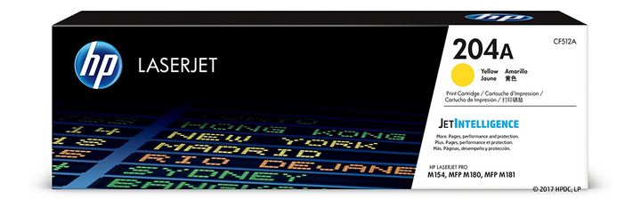 CF512A HP?204A Yellow Original Toner Cartridge Product specifications:Color:?YellowProduct:??Toner?CartridgeProduct type:?Original?Number of copies: 900Manufacturer:?HP incManufacturer's number:?CF512A HP #204APrinter compatibility: HP - Color Laserjet Series: ???? Color Laserjet M180nw? ?